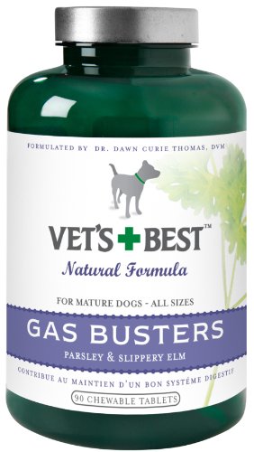 Buying Vet's BestTM Gas Busters Tablets for Dogs Help is on the way for occasional gas, bloating and digestive upset. Vet's BestTM Gas Busters are a blend of effective and long-trusted natural remedies in a tasty, easy-to-give tablet. Features: ? Contains slippery elm, parsley and ginger root to quiet stomach upset ? Controls uncomfortable tummy trouble in mature dogs ? Supports a healthy gut ? Provides enzymes and factors necessary for normal digestion ? Mild enough to give up to two doses daily Item Specifications: Size: 90 Tablets Active Ingredients: Per Chewable Tablet: Parsley (5 sale